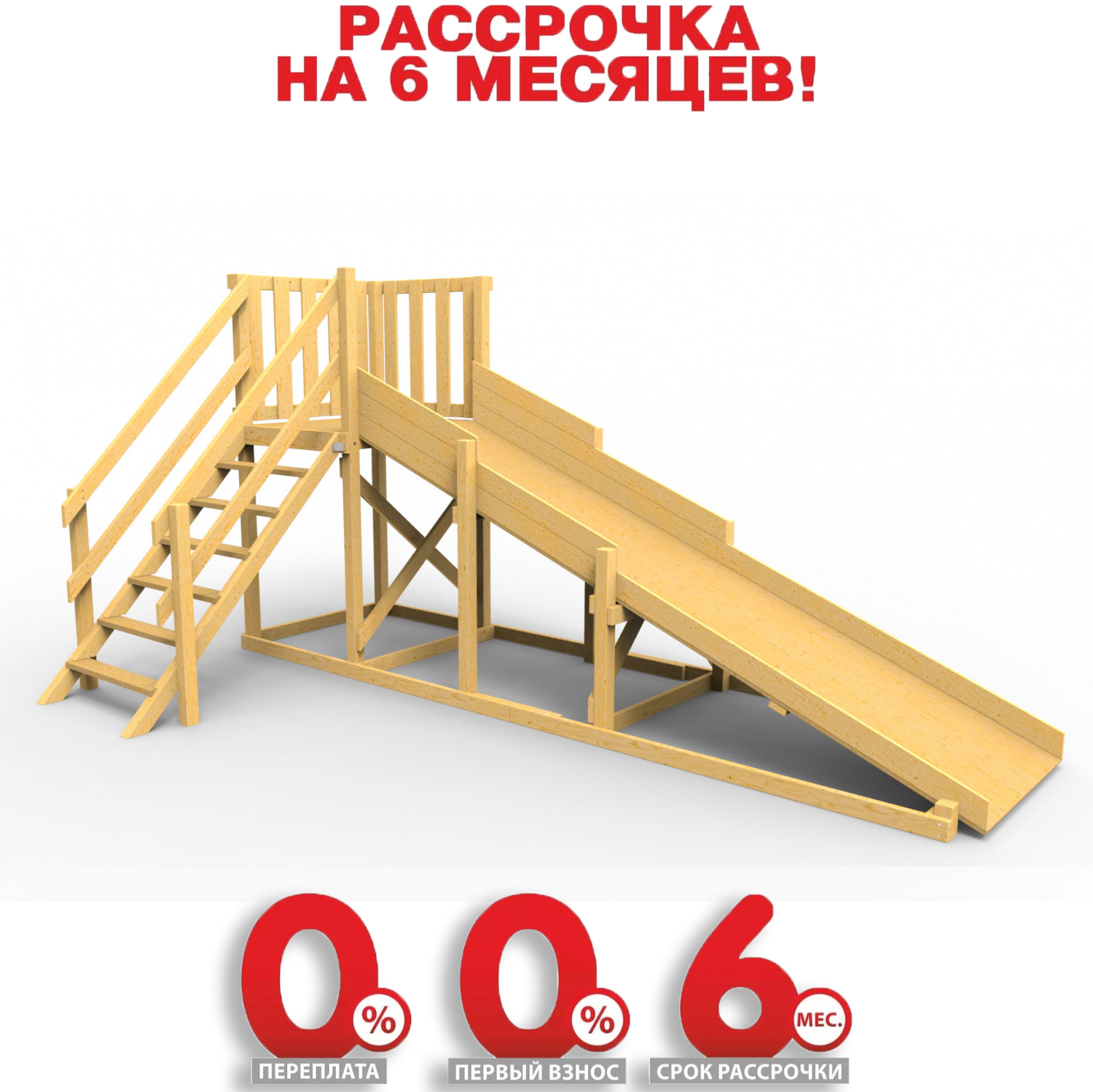 Обращаем Ваше внимание, что фактический цвет детской площадки может отличаться от представленных фото на сайте. Специфика окраски нетоксичными пропитками и красителями допускает отклонения в цветовой гамме отгружаемых изделий. Также обратите внимание, что фактический цвет может отличаться из-за цветопередачи устройства на котором Вы смотрите фото.