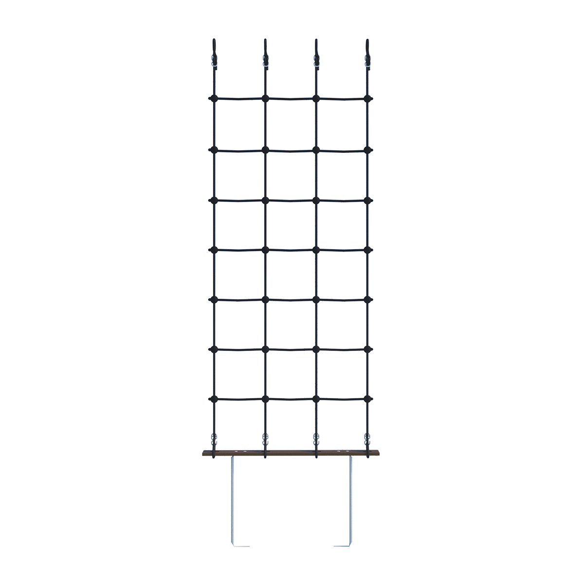 Сетка лаза устанавливается на рукоход спортивного комплекса. Необходимые для монтажа крепежи, а также грунтозацепы поставляются в комплекте. Изделие имеет универсальные габариты 2100*780мм, что позволяет закреплять сетку на комплексах различных размеров. В зависимости от высоты комплекса, игровой объект может быть установлен вертикально под прямым углом или под небольшим наклоном. Надежность фиксации обеспечивает метод монтажа к поверхности – бетонирование на специальные грунтозацепы. Эксплуатация игрового объекта допускается только после полного застывания бетона.